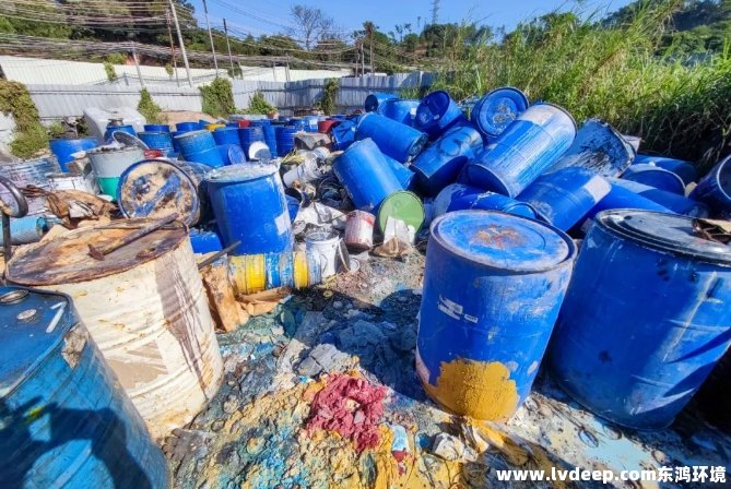 為打擊危險廢物環境違法犯罪行為,東莞市生態環境局塘廈分局持續對槽罐車偷排行為、邊角地塊非法處置危險廢物作坊等開展摸排打擊,近日利用無人機在某社區邊角區域發現一非法拆解廢桶場所。